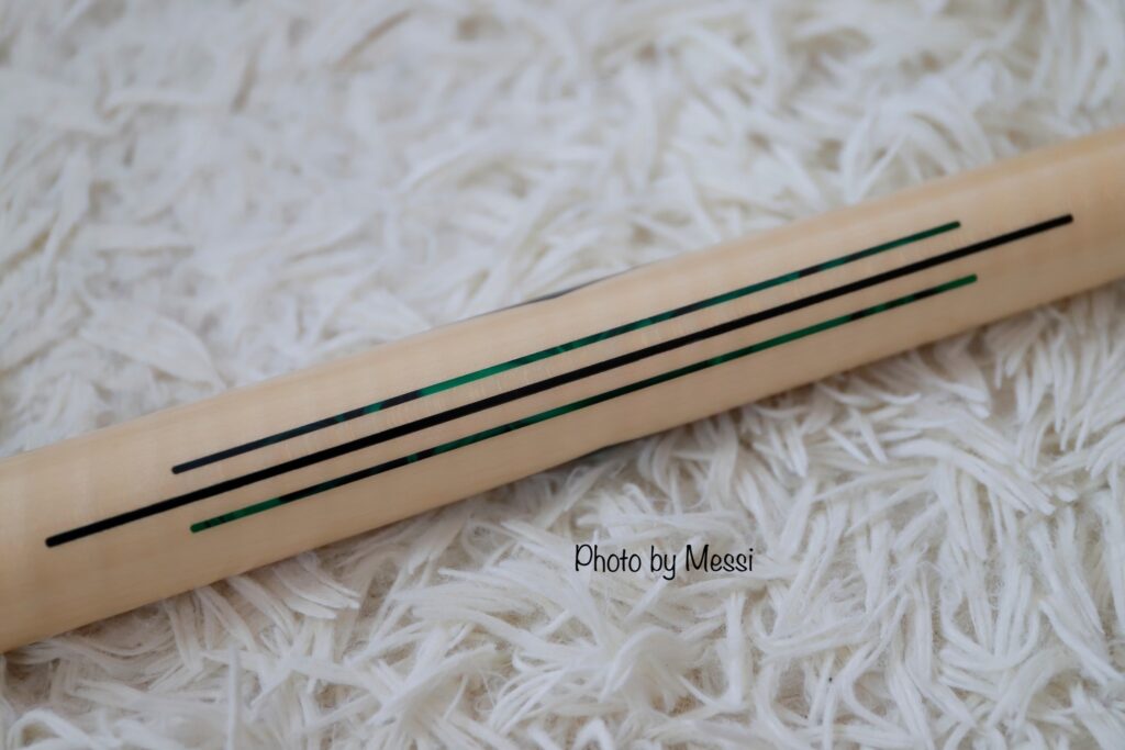 Phần đế và khoen nối xanh trên Black là vật liệu Epoxy, còn trên White là gỗ Curly map. Các chi tiết cẩn ghép còn lại màu xanh lá kết hợp trên nền gỗ Olive có sớ rất đẹp.